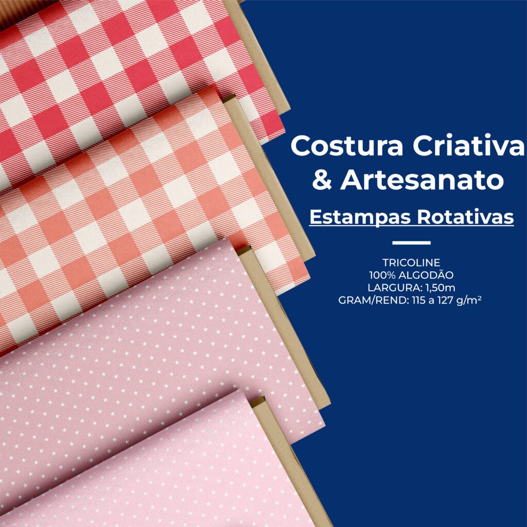O Tricoline é a escolha ideal para artesãos que buscam um tecido de alta qualidade, macio e com cores vibrantes. Feito 100% em algodão, ele proporciona um acabamento impecável e valoriza cada detalhe da sua criação.