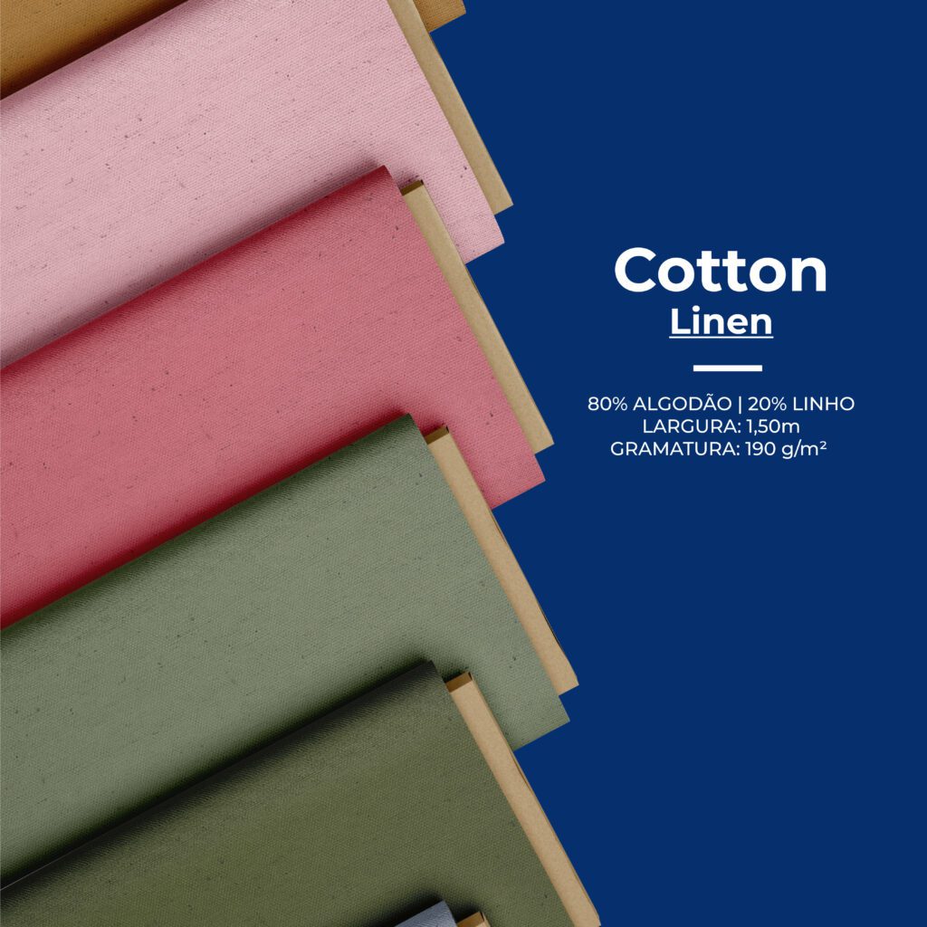 O Cotton Linen combina o melhor do algodão e do linho, resultando em um tecido resistente, prático e sofisticado. Com toque levemente encorpado e textura natural, é uma excelente opção para moda, artesanato e decoração.