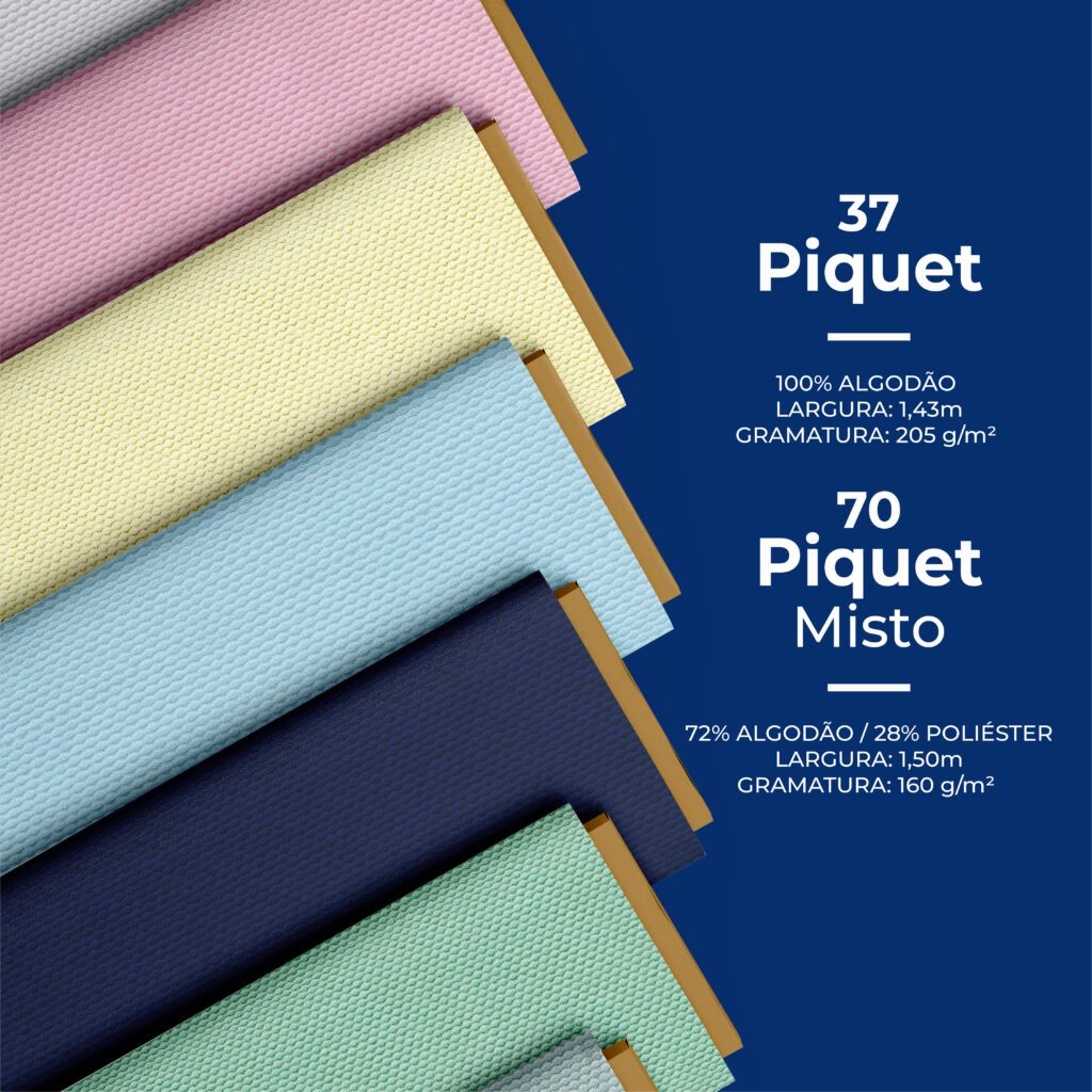 O Piquet Misto harmoniza o melhor das duas fibras: a maciez e o caimento natural do algodão com a durabilidade e funcionalidade do poliéster.